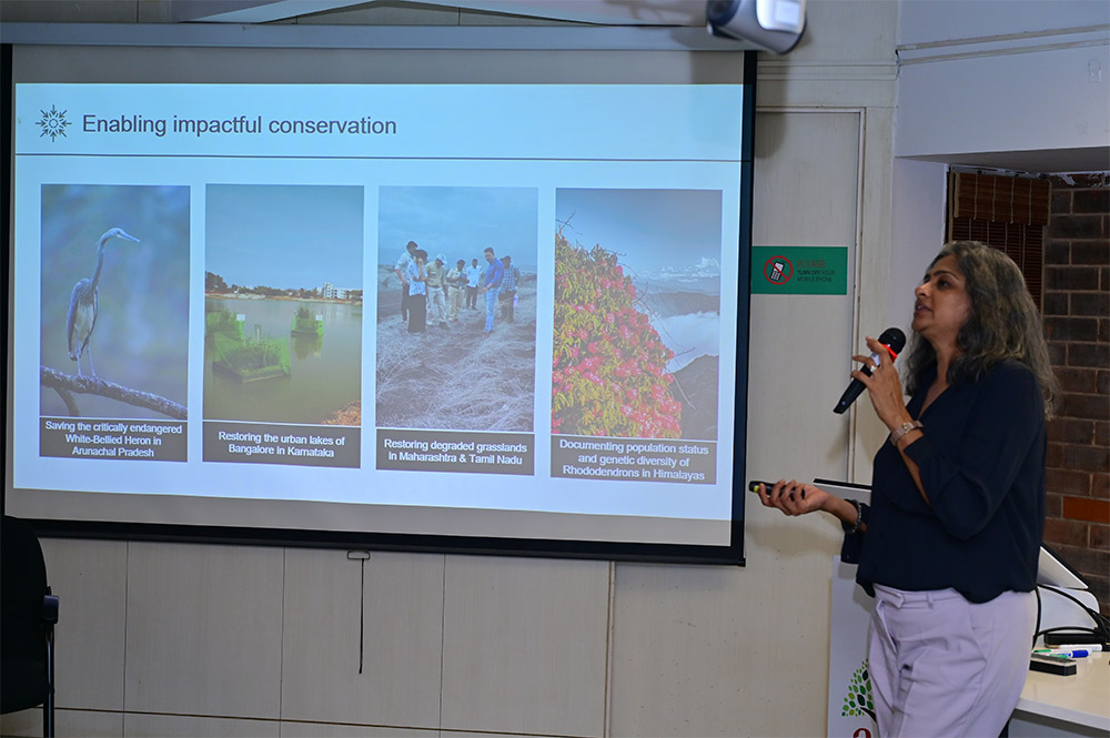 The session at ATREE’s Head Office included highly interactive sessions with three researchers that offered deep insights into key environmental issues such as forest governance, water pollution, and unique ecosystems.